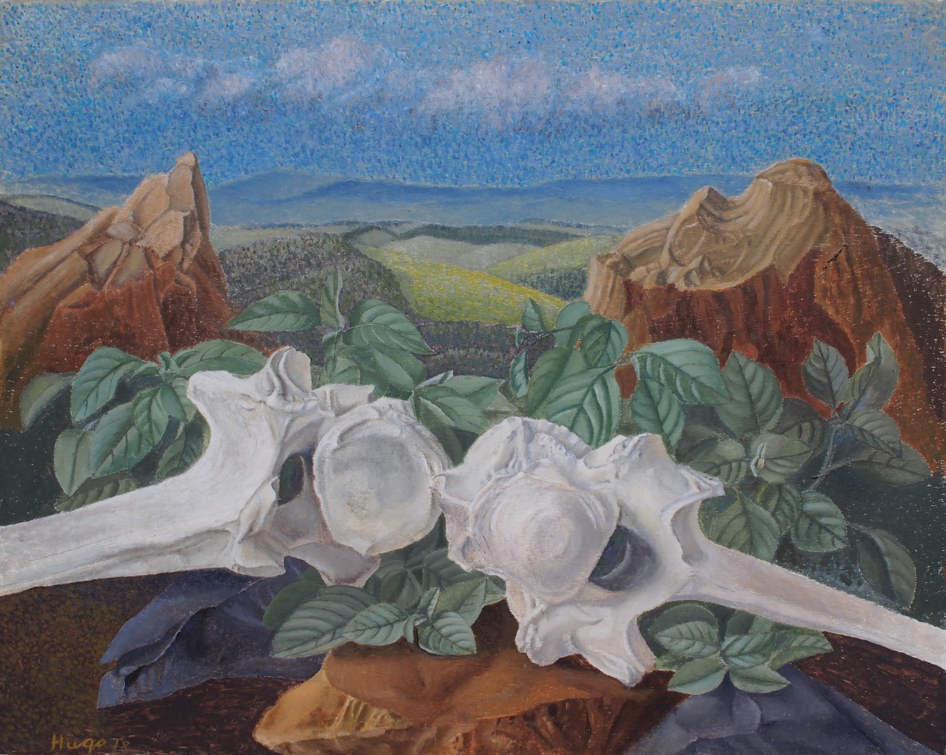 The forms of rocks, stones and bones also inspired him. He would go and collect interesting pieces of the red shale common to Natal. If he spotted bones next the road or in a nature reserve, he would stop to take them. Some of his oil paintings feature these objects.